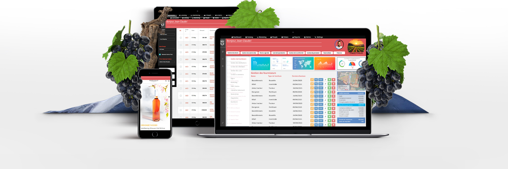Votre site web n'est plus seulement un site vitrine. il devient votre plateforme sur-mesure en ligne pour gérer votre domaine viticole et vos opérations. De la récolte à la mise en bouteille, du marketing au support client, tout est intégré en un seul endroit accessible de votre portable.